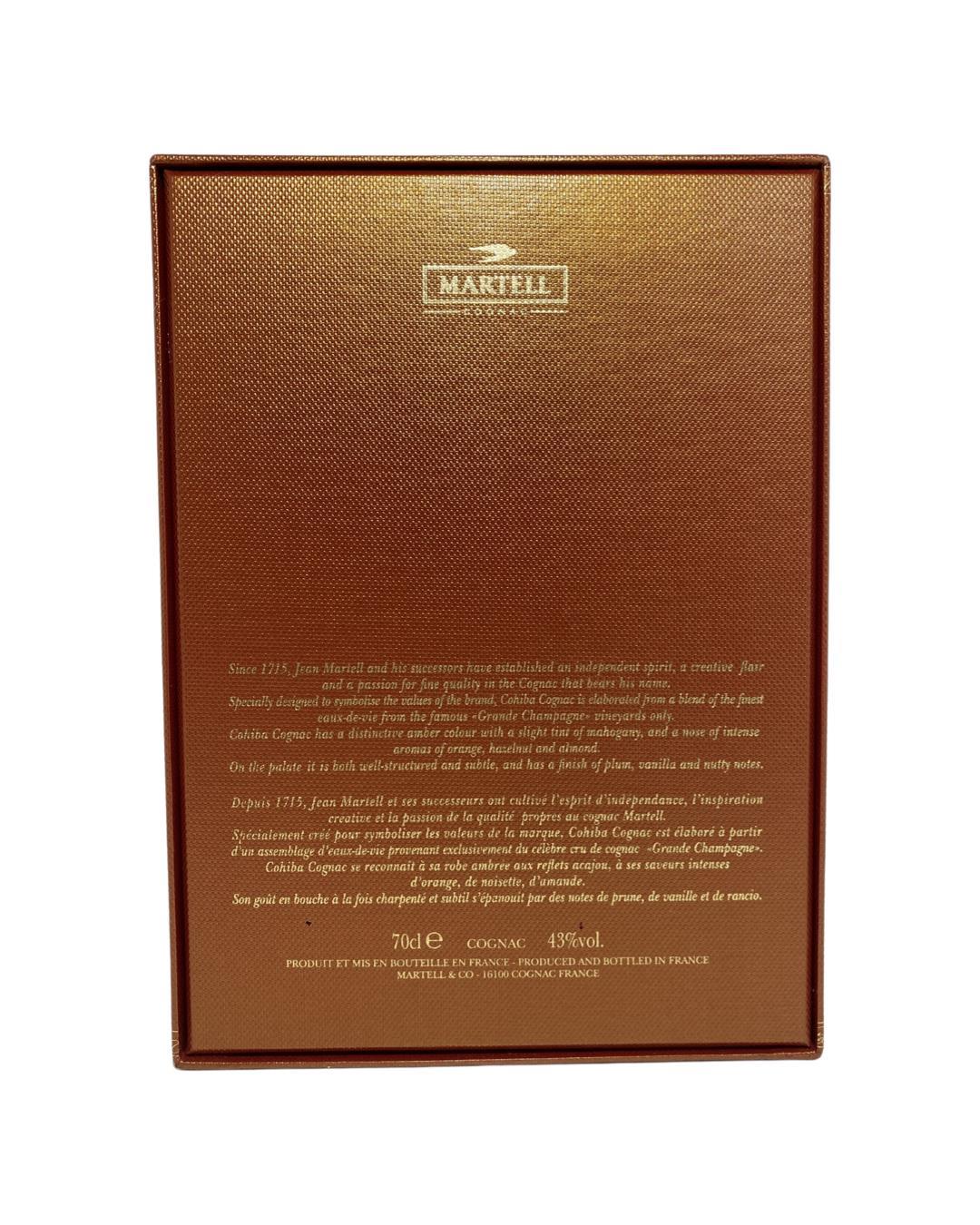 Martell Cohiba is a unique composition of aged eaux-de-vie from the Grande Champagne terroir.This cognac yields complex and intense aromas, honouring its Cuban kinship with Cohiba cigars. The perfect alliance of expertise. Perfect to enjoy on its own or with your favourite cigar.