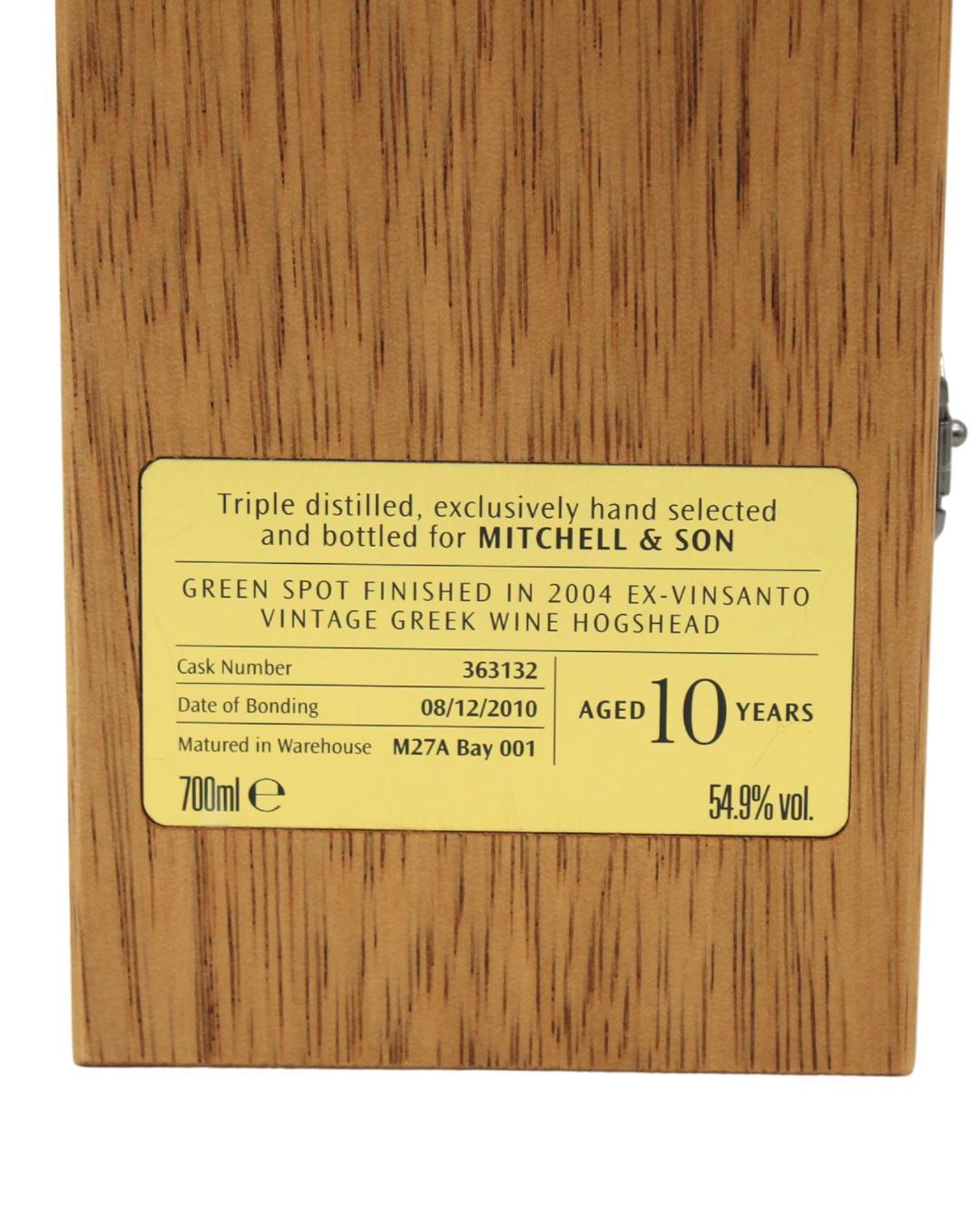 A 10-year-old single pot still Irish whiskey, released as part of the Green Spot Greek Wine Cask Series and bottled exclusively for Mitchell & Son. This expression was finished for eight months in an ex-Vinsanto wine cask, imparting additional depth and complexity. Drawn from Cask No. 363132.