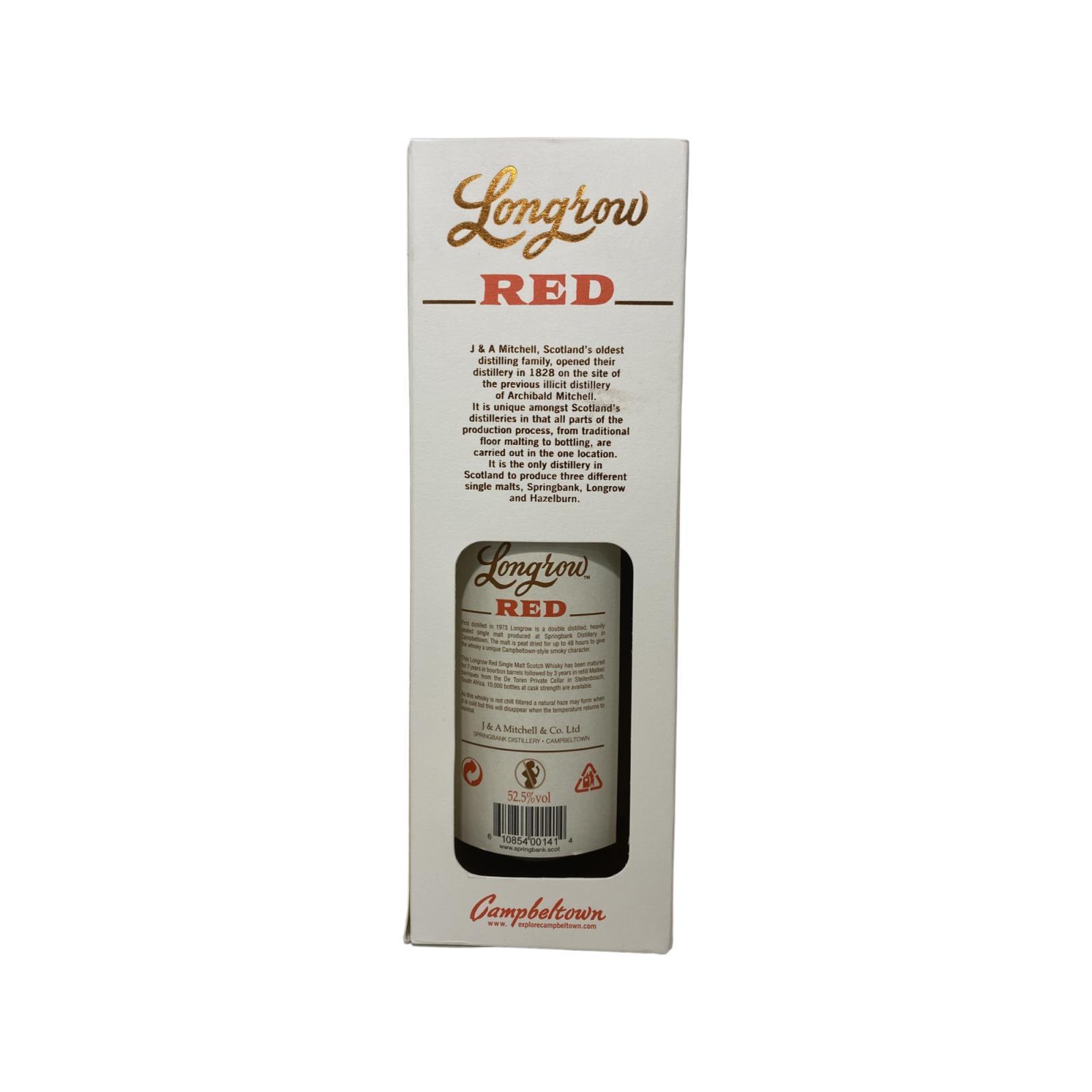 The latest Longrow Red release is 10 years old. After 7 years in bourbon casks it was transferred to refill Malbec barriques for about 3 years. The casks were sourced from De Toren cellars in South Africa, which are famous for their Bordeaux-styled Z or Fusion wines.