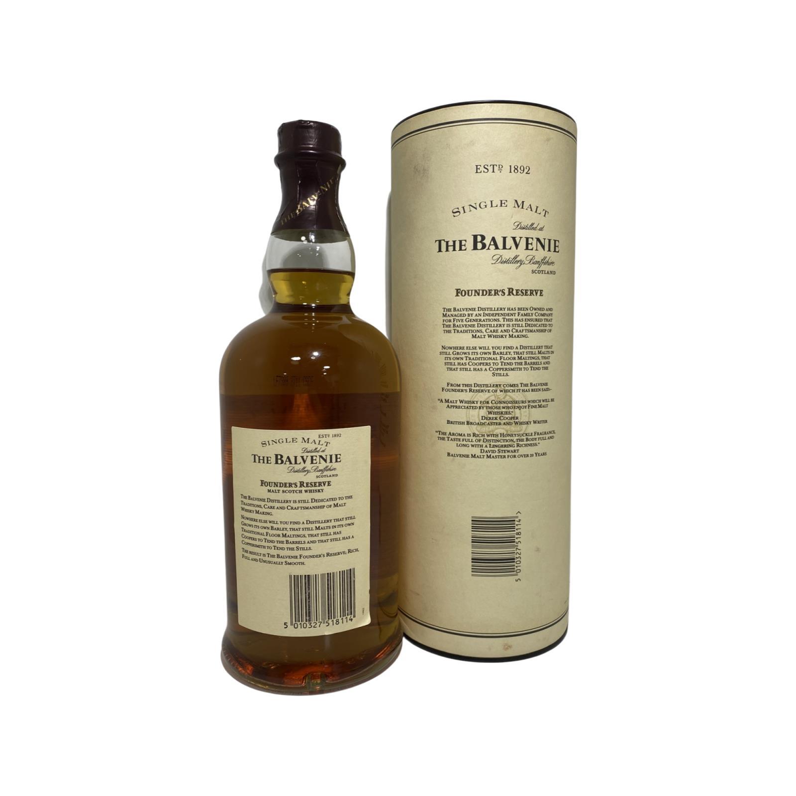 The Balvenie Founder's Reserve pre-dates the "DoubleWood" and the focus on cask finishing that followed. It is a marriage of single malt matured in both ex-bourbon and sherry casks, created by malt master, David Stewart. It was launched in the early 1980s, originally packaged in the now iconic cognac style bottles. This is a later release in the more familiar Balvenie livery. Hugely popular in its time, this former cornerstone of the Balvenie core range was discontinued in 2009.