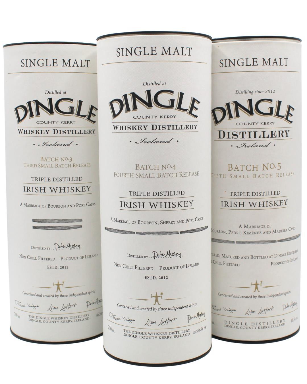 Batch 3, 4 and 5 of Dingle single malt. Guide Price: €250 - €350