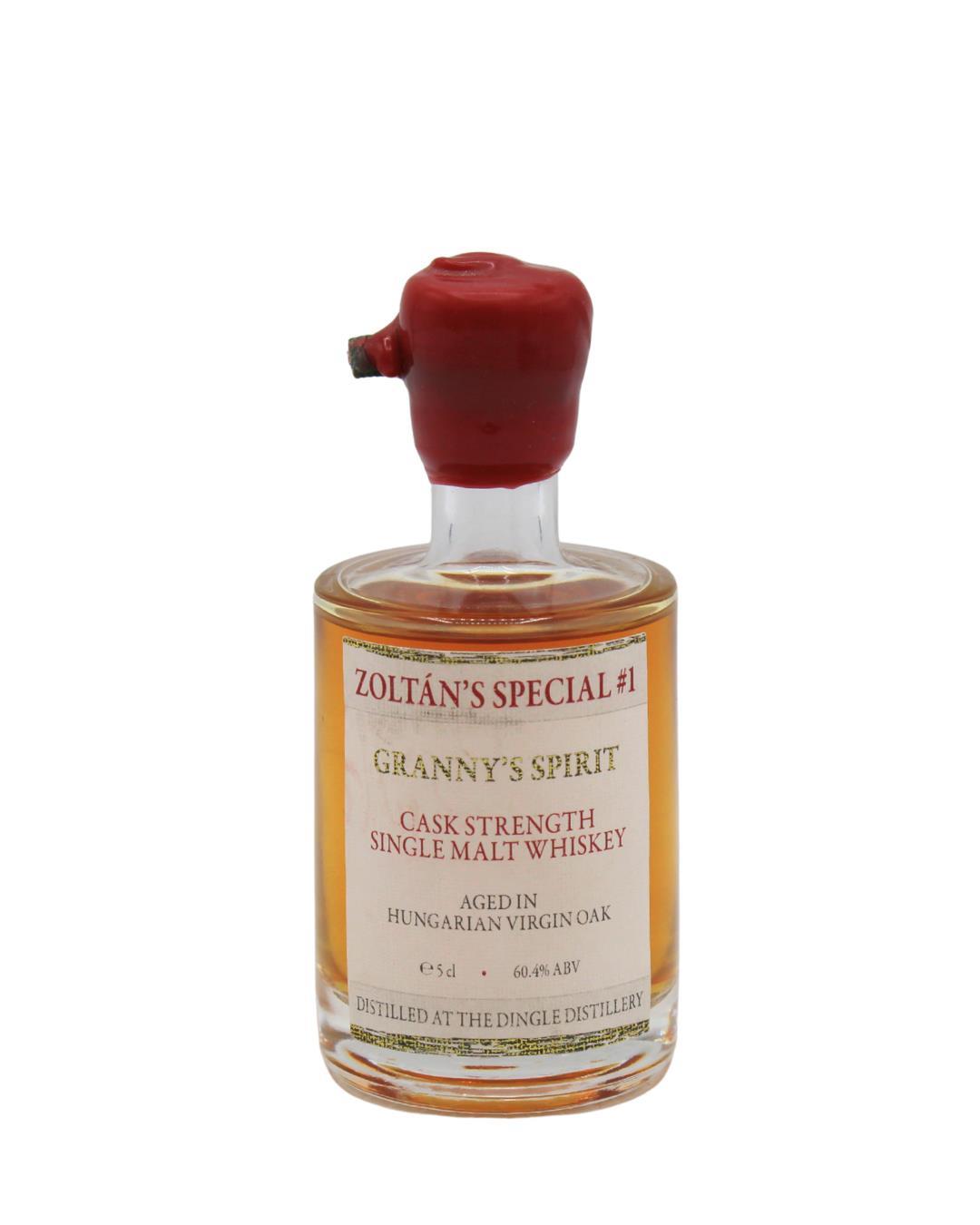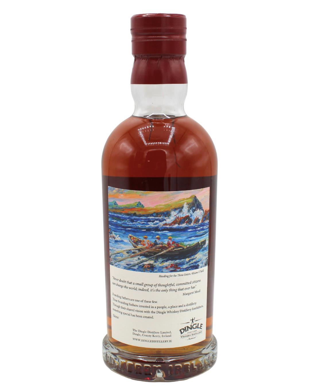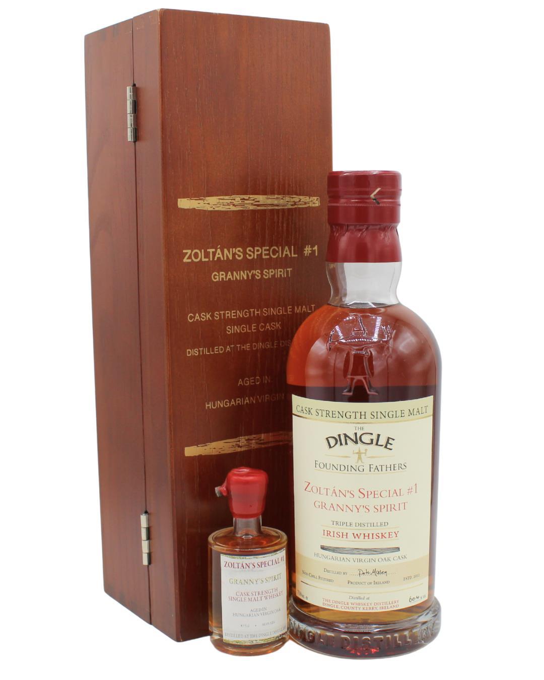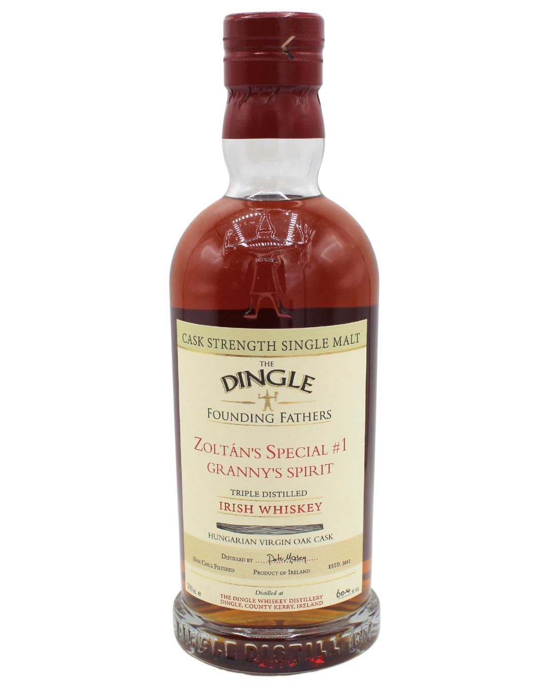 A distinctive Founding Fathers Cask Strength Single Malt from Dingle Distillery, matured exclusively for over 5½ years in a 120-litre Hungarian virgin oak cask known as “Granny’s Spirit.”