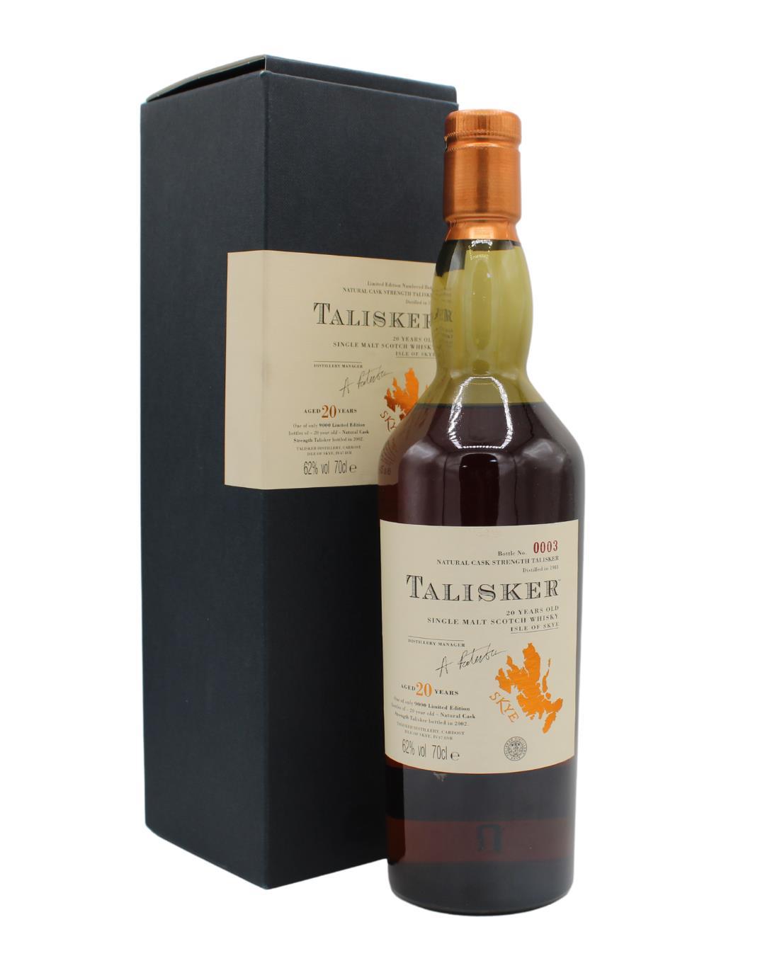 Talisker 1981 20 year old Cask Strength Bottled in 2002 in original box. Bottle number 0003 of 9000 bottles.