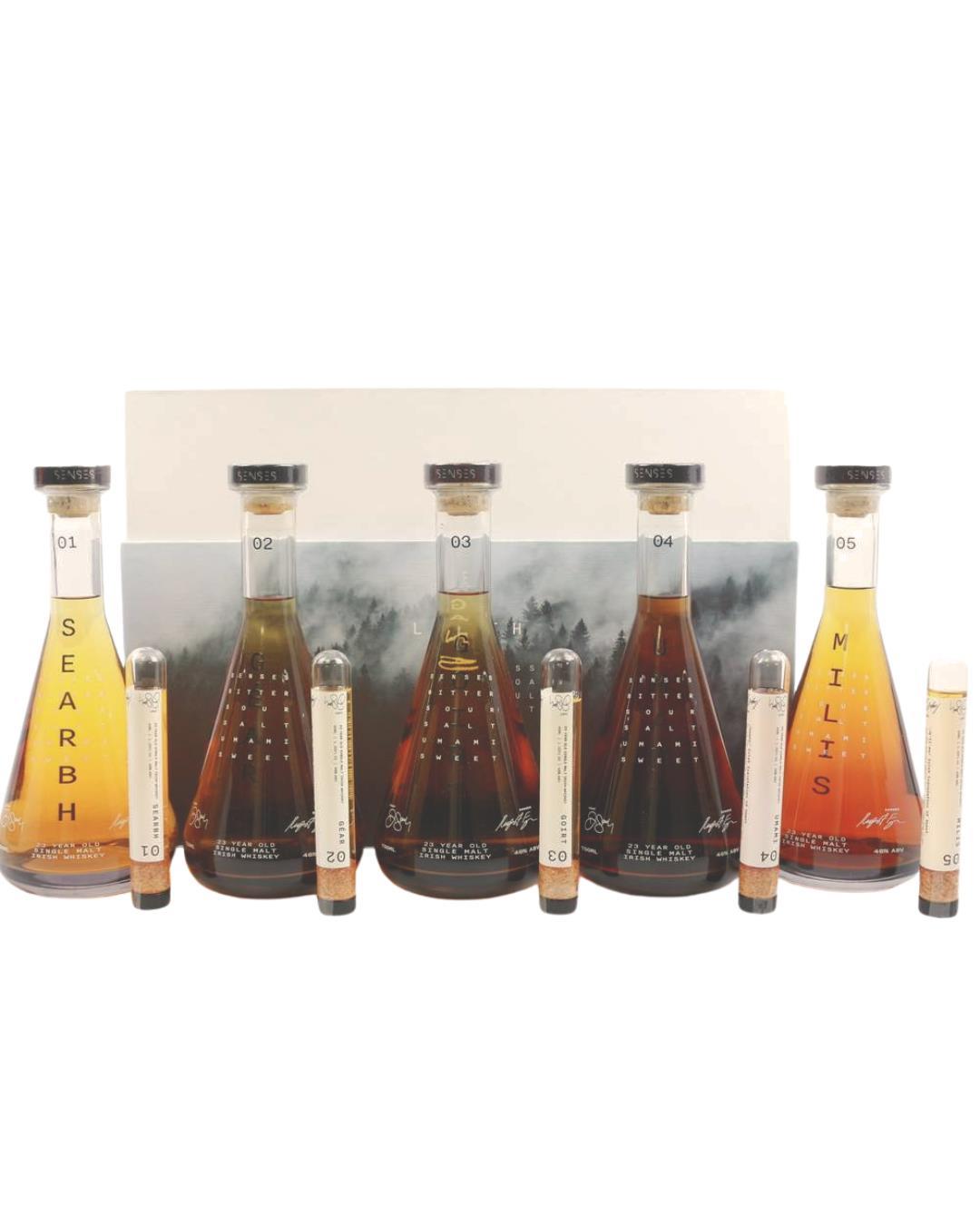 A spirits project unlike any other, born from a shared goal of expressing taste’s five building blocks – Bitter, Sour, Salt, Umami, and Sweet – through a set of five individually crafted and finished ultra-premium 23 year old Single Malt Irish whiskeys, with just 200 sets available globally. The Senses case holds five 700ml bespoke bottles of 23 year old Single Malt Irish whiskeys, a Sample Box featuring five 40ml tasting phials, and a series of beautifully produced cards chronicling the three-year whiskey development journey.