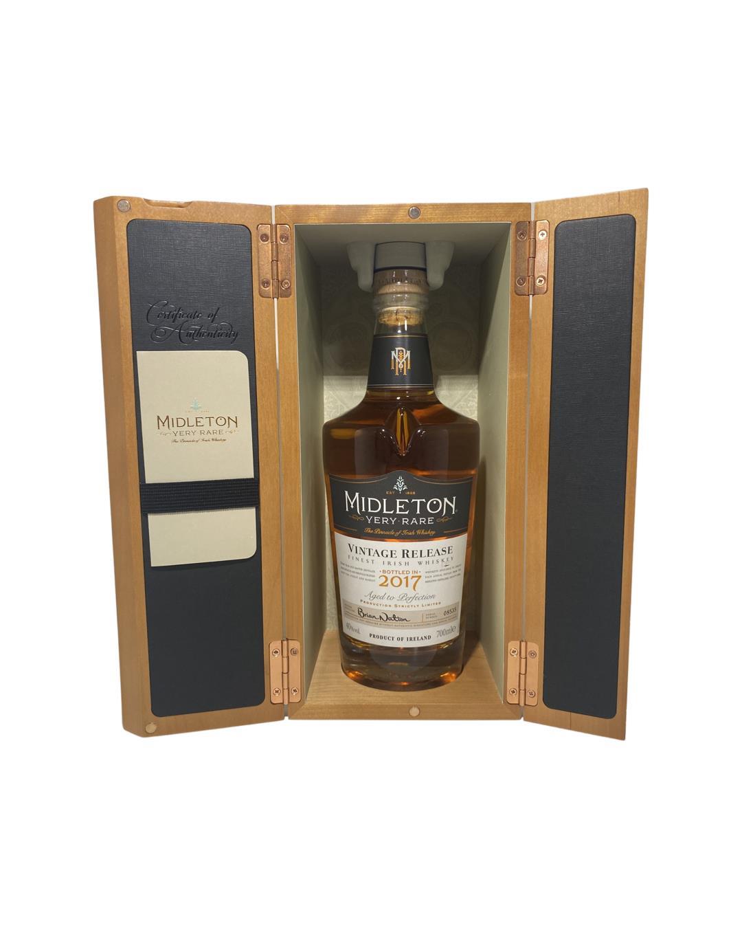 The Midleton Very Rare 2017, is a bottling brought out by the Midleton Distillery in Co. Cork. The ‘Midleton Very Rare’ range was launched in 1984 and a new vintage has been released every year since then. Barry Crockett started off the ‘Midleton Very Rare’ range while he was the Master Distiller of Midleton Distillery, in 2013 Barry Crockett retired from his role of Master Distiller. From 2014 onwards Brian Nation has been creating the ‘Midleton Very Rare’ range, maintaining its role as standard-bearer and pinnacle of Irish Whiskey. The bottle and gift box in great condition also include the cert and distillery invite. Bottle number 08535