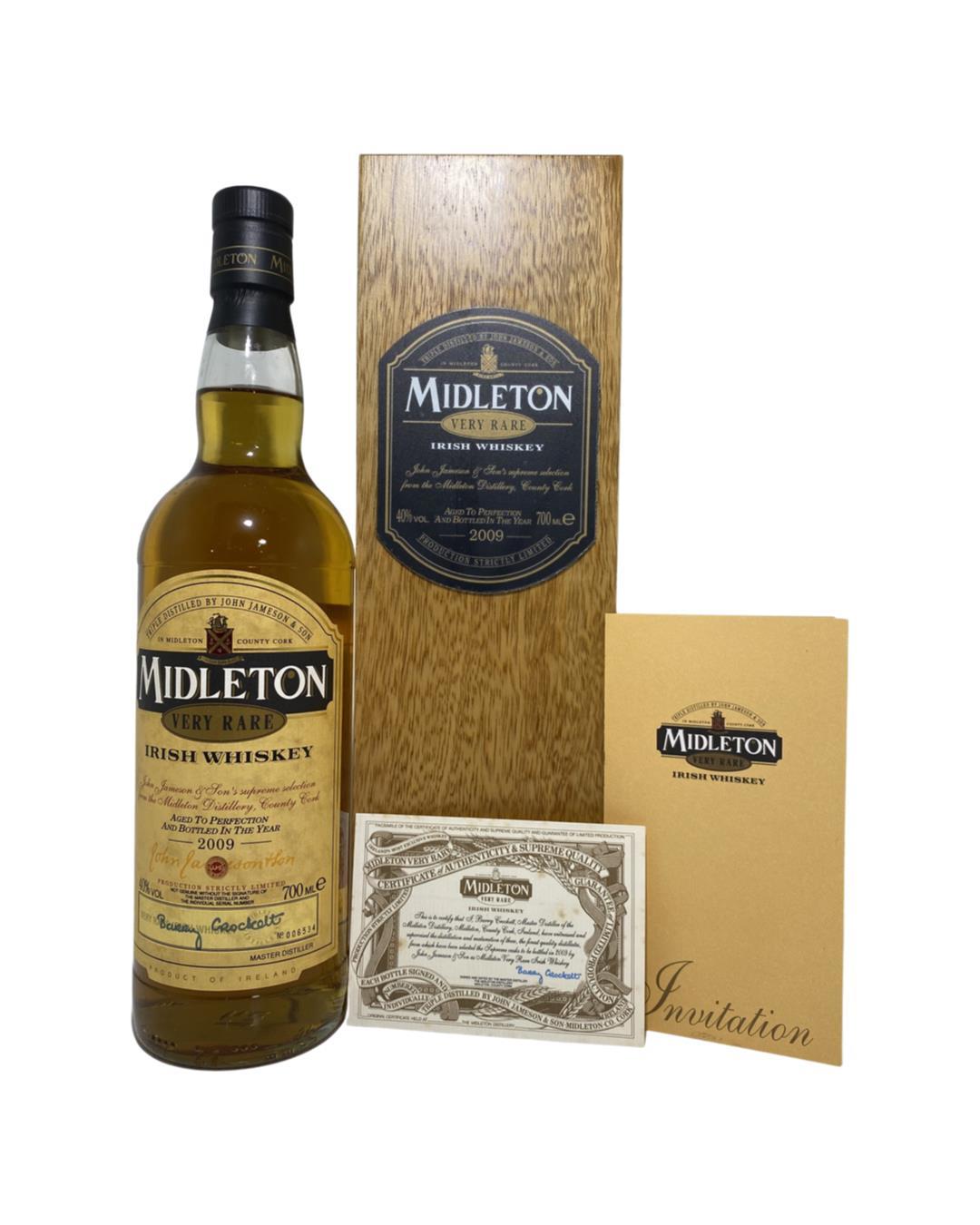 The Midleton Very Rare 2009, is a bottling brought out by the Midleton Distillery in Co. Cork. The ‘Midleton Very Rare’ range was launched in 1984 and a new vintage has been released every year since then. Barry Crockett started off the ‘Midleton Very Rare’ range while he was the Master Distiller of Midleton Distillery, The bottle and box are in excellent condition and include the distillery invite and certificate.